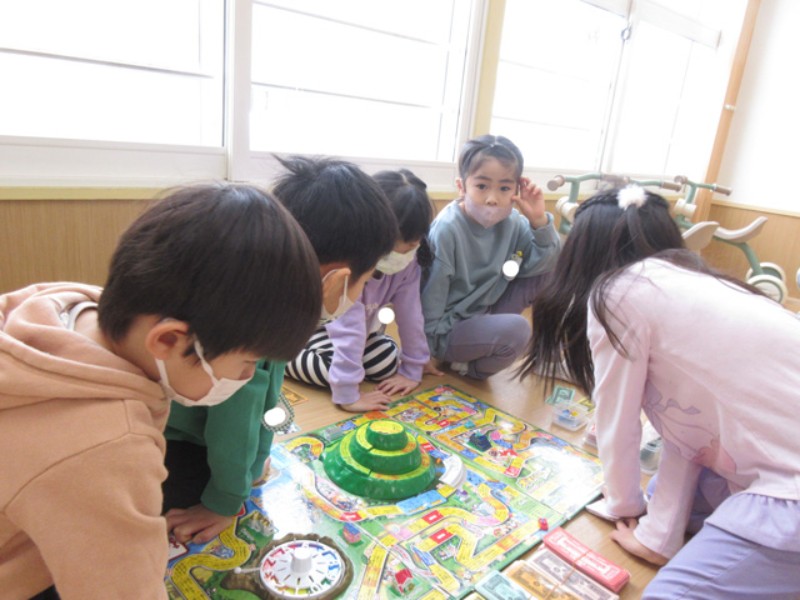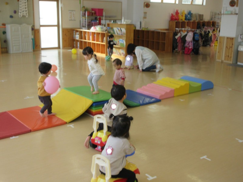 今日は午前中の活動のうち前半は月齢別保育をしました。高月齢の子たちは初めてのかるたに挑戦!始めは、動物や食べ物のカードを見つけて指差す子が多かったのですが、回数を繰り返すうちに手が出るようになりスピーディーにカードを取れるようになっていましたよ。たまごの型合わせの玩具を使ってぴったんこ競争もして、みんな必死にたまごを集めていました!低月齢の子は、2階ゆうぎ室でままごとやトランポリン、すべり台等で遊びました。割り箸と洗濯ばさみで作った手作りトングが人気で、なんとかおままごとを挟もうと一生懸命動かしたり、マドラーに見立ててコップの中をかき混ぜたり♪さらに、出来上がったごはんを持っておうちの中に入っていく子、車に乗ってお出掛けに行く子などそれぞれ楽しんでいました。後半はみんなで2階ゆうぎ室で過ごしています。自分の好きな遊びを見つけることが早くなっていたり、友達の存在を意識している姿が見られてきたひよこ組ですよ。